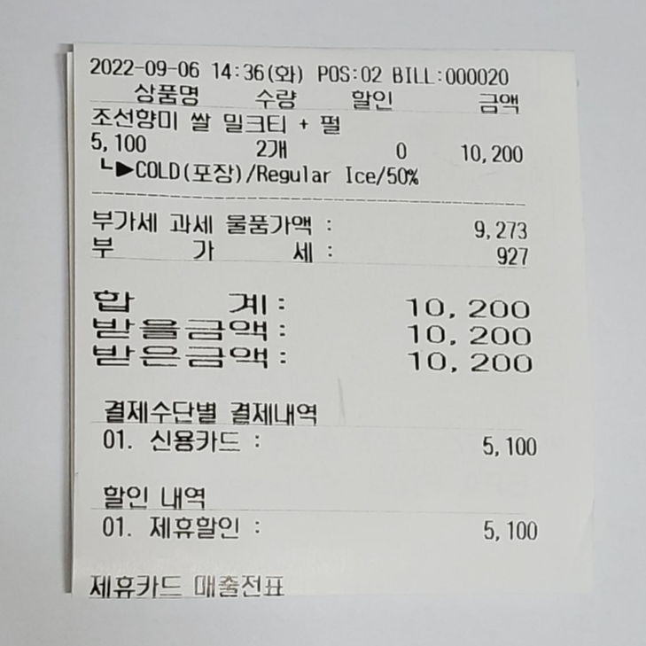 공차의 모든 음료가 대상이 아니며, 주문한 메뉴 2개도 같은 상품이어야 하기 때문에 혜택이 어마무시하다고 보긴 힘들지만 묻지도 따지지도 않고 50% 할인혹은 적립인게 단점을 충분히 상쇄한다고 생각합니다.