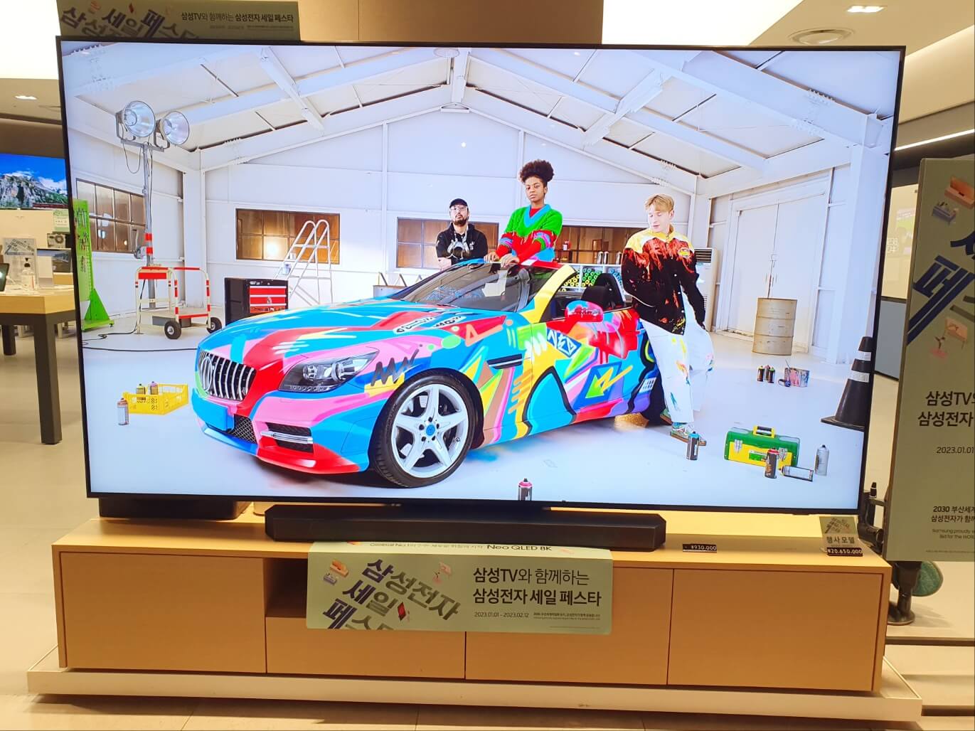 오프라인 매장에서는 Neo QLED 8K TV도 행사 중이었습니다. 워낙 판매가 자체가 고가이므로 세일가도 쉽게 구매하기는 어려운 가격대이나, 화질이나 선명도가 일반 TV와는 확실히 차이가 느껴졌습니다.