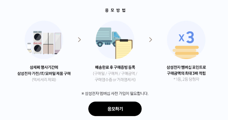 - 당첨혜택 : 1등 구매금액의 3배 환급(1명), 2등 구매금액의 1배 환금(5명), 3등 스타벅스 아메리카노 기프티콘(3천 명)