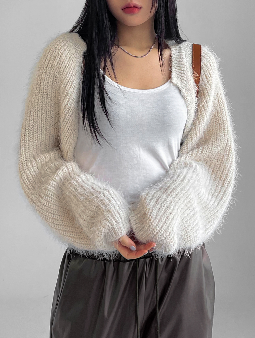 시크라는 무드는 비슷한데 조금 밝은 느낌의 시크랄까? 머리가 검기 때문에 블랙or화이트 코디에 독특한 분위기가 생기는 것 같습니다. 코디들을 보아하니 가디건의 색과 톱과 팬츠의 색은 서로 대비되는게 기초적인 공식 같구요. 일단 블랙 볼레로 가디건 코디나 화이트 볼레로 가디건 코디나 각자만의 분위기가 있다는건 확실히 알 것 같네요. 역시나 같이 매칭되는 소품들이 중요해 보입니다.