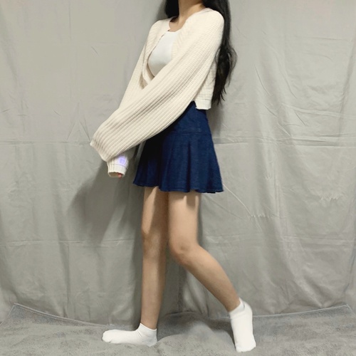 제 눈에는 아이보리가 제일 무던해 보이면서도 예뻐보이는데 어떠세요? A라인 청치마와 입으니까 청순 그 자체고 검정 H라인 미니스커트와 입어도 괜찮네요. 청바지와 입으니까 캐주얼해 보이고 유광 하렘팬츠와 입으니까 분위기 있어보이네요! 가방이나 스니커즈 디테일에 갈색이 있다면 좋은 포인트가 될 것 같아요. 물론 우리가 많이 신는 아이보리나 흰색 운동화도 무난하고 좋겠습니다!