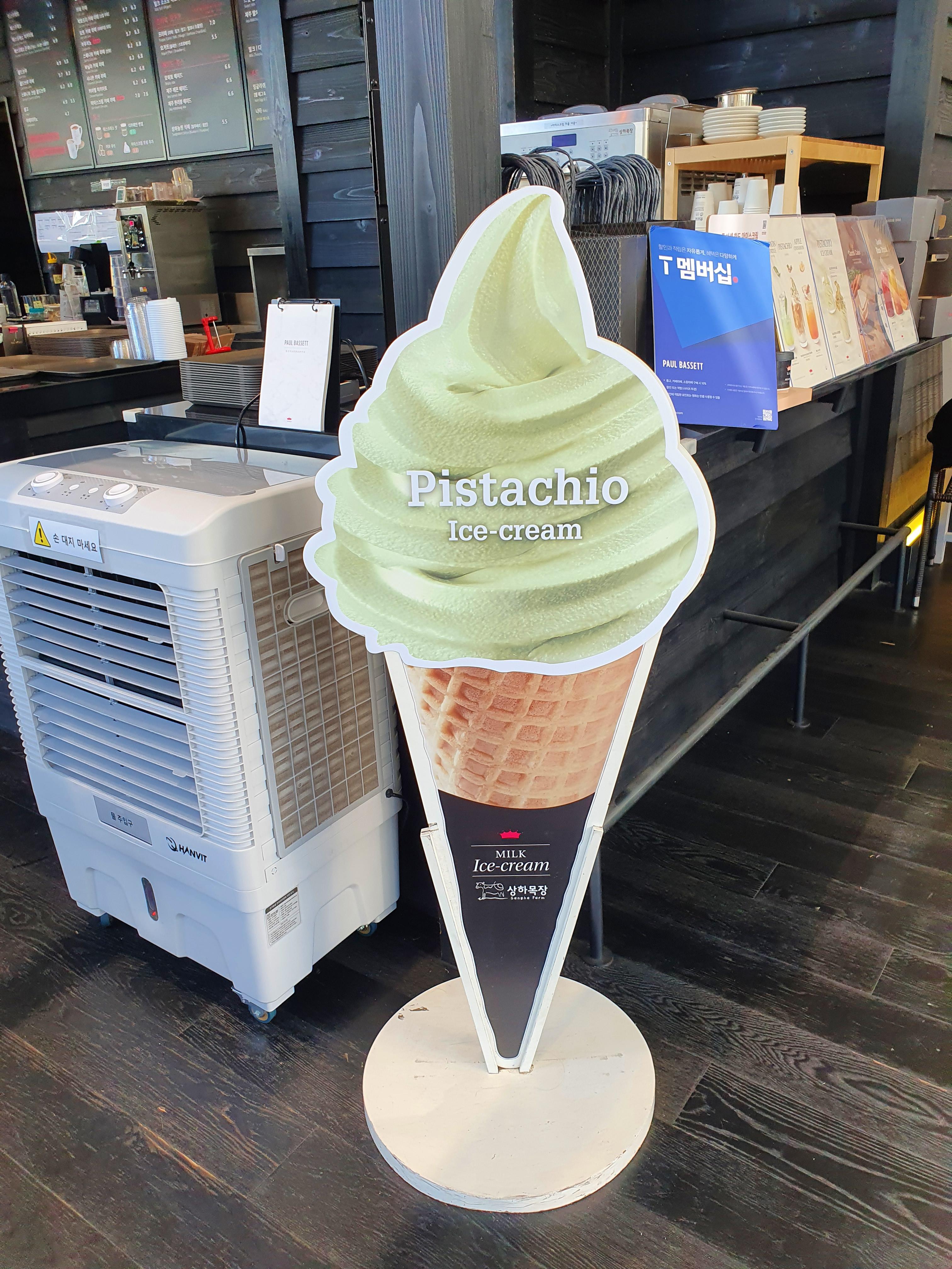 폴 바셋 매장에 들어서자마자 가을 메뉴로 밀고 있는 피스타치오 아이스크림 간판이 보였습니다. 카페 음료 부동의 1위로 폴 바셋의 아이스크림 라떼를 꼽는 저이기에 피스타치오 아이스크림 자체의 맛도 맛이지만 함께 어우러진 카페라떼의 맛은 어떨까 굉장히 궁금했습니다. 가격은 스몰 사이즈가 7,500원 그란데 사이즈가 8,100원으로 많이 비싼 편입니다. 그래도 아이스크림 라떼를 너무 좋아하는지라 도전해봤습니다.