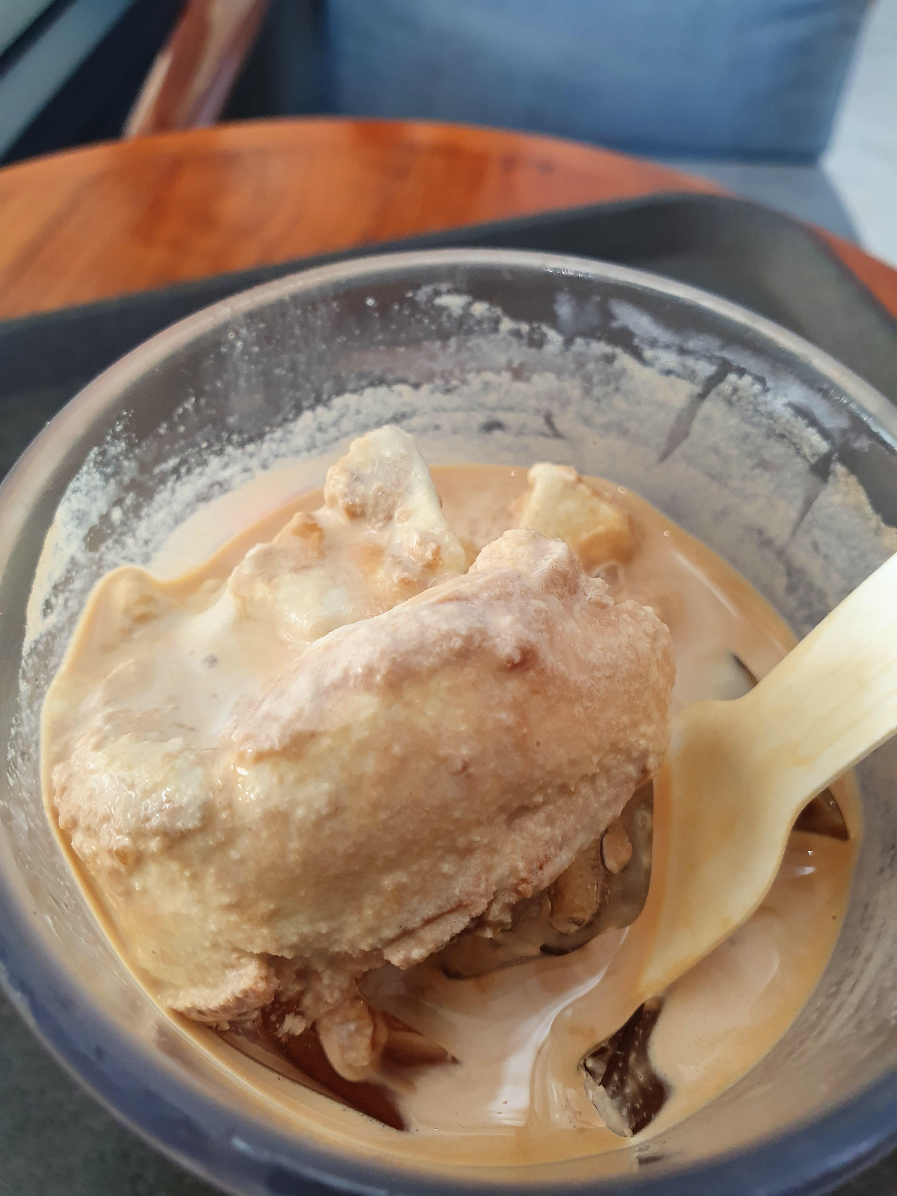 커피와 우유층이 분리되어 있으니 잘 저어서 섞어 드시면 더 맛있습니다. 메뉴명이 오트 카페 라떼라서 라떼에서 진한 곡물의 맛이 나려나 생각했었지만 곡물 맛이 나긴하지만 진한 편은 아니었습니다. 오히려 피스타치오 아이스크림과 섞어 먹었을때 피스타치오 향이 나서 피스타치오 라떼 느낌이었습니다. 그렇지만 결론적으로 오리지널 아이스크림 카페라떼에 견줄만한 맛은 아니었습니다. 재구매 의사는 없습니다.