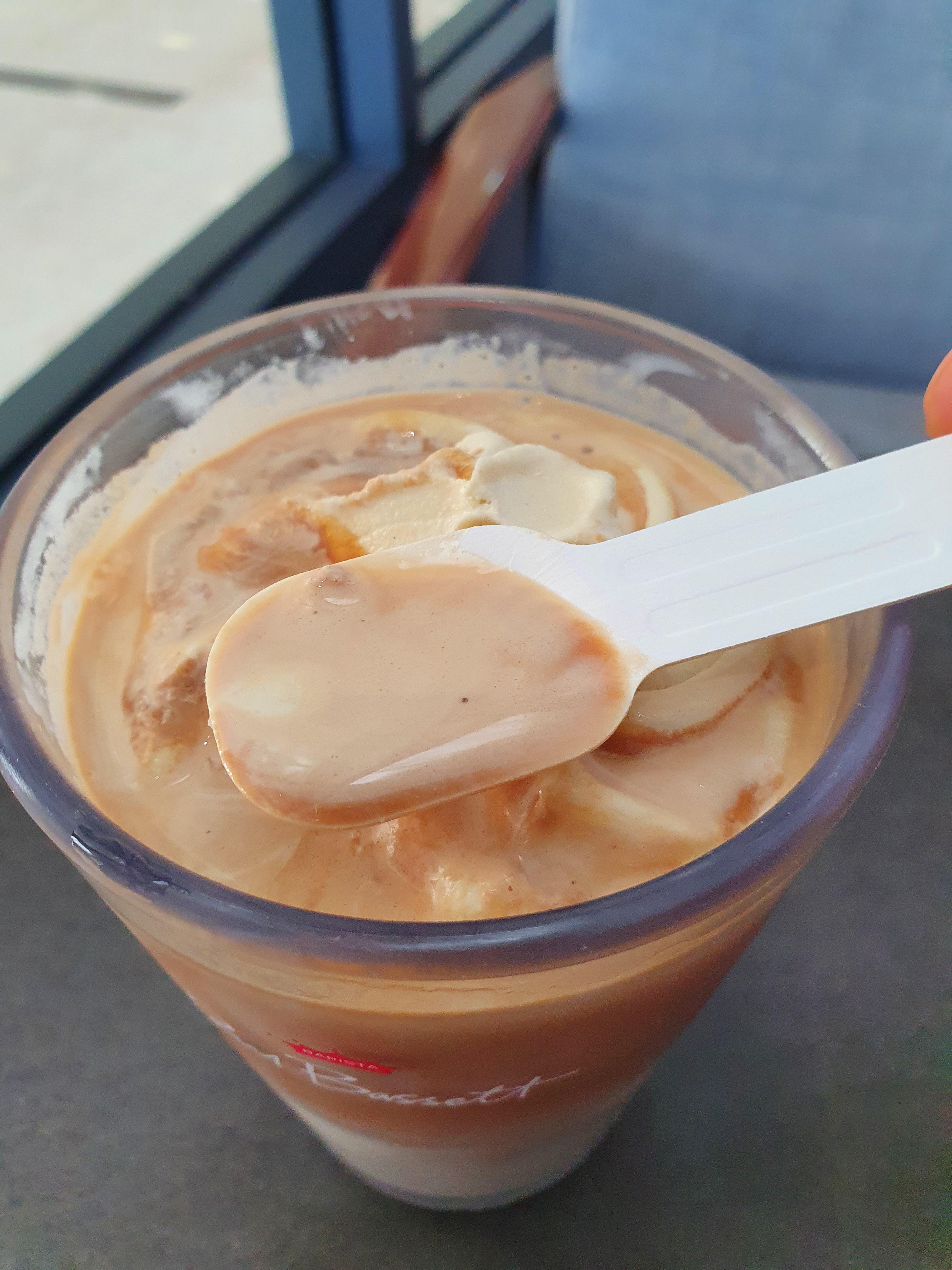 우선 커피 위에 올려진 피스타치오 아이스크림은 폴 바셋 특유의 부드러움과 진하고 깊은 맛이었습니다. 함께 제공된 일회용 스푼으로 아이스크림만 떠먹었을 때 마치 피스타치오를 실제로 먹는 듯한 느낌이 들 정도로 진해서 피스타치오를 좋아하시는 분이라면 좋아할 것으로 예상됩니다. 아이스크림 양도 꽤 많이 들어있었습니다. 적당히 아이스크림만 떠먹으며 맛을 온전히 즐긴 후 나머지 아이스크림은 음료에 섞어서 먹었습니다.