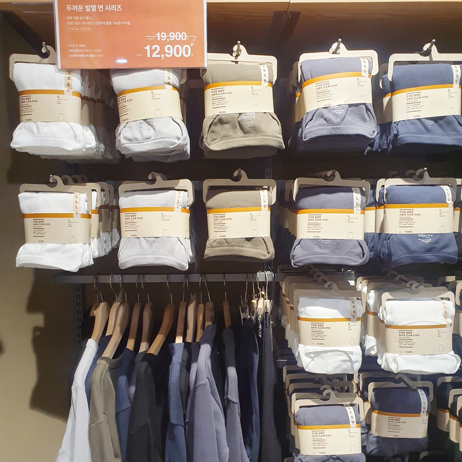 무인양품 특유의 깔끔함이 묻어있는 기본 티와 겨울에 필수템인 발열 면 시리즈를 만나실 수 있습니다. 또한 파자마, 편안한 기모 팬츠와 두툼한 겨울용 아우터, 경량 다운 베스트부터 스타일리시하게 코디할 수 있는 케이블 패턴 양말까지 다양한 제품이 할인 행사 중입니다.