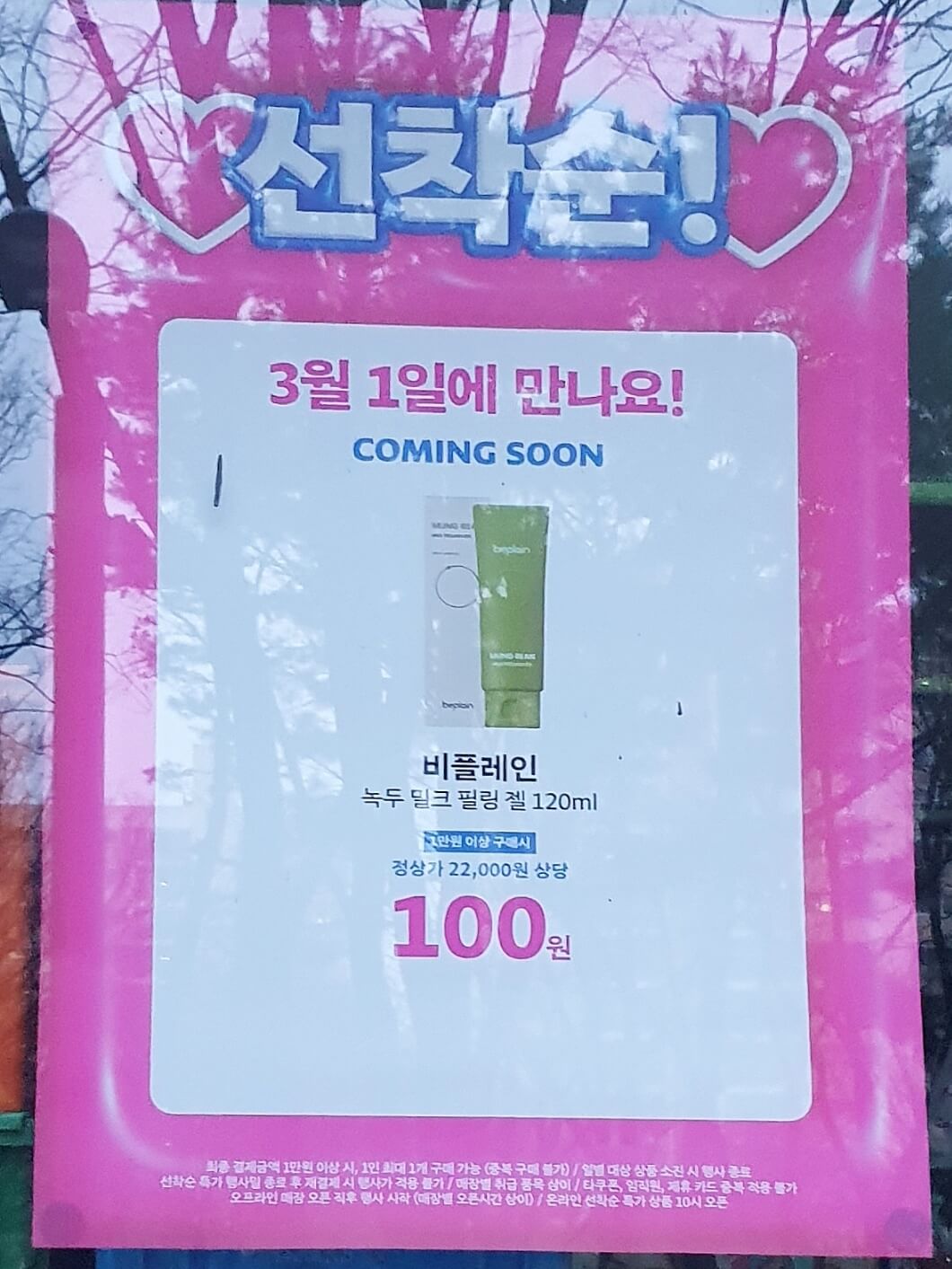 세일 기간 7일 중 단 3일 진행되는 선착순 특가를 놓치지 마세요! 세일 첫 날인 3/1(금)에는 비플레인 녹두 밀크 필링 젤 120ml 단돈 100원에 구매하실 수 있습니다. 선착순 특가 상품은 매장 오픈 후 빠르게 소진됩니다. 구매를 원하시는 분들은 오픈시간에 맞춰 방문하시는 것을 추천드려요 3/4(월)에는 나인위시스 하이드라 수분앰플 나노 플러스, 3/7(목)에는 센텔리안 24 마데카 크림 타임 리버스 제품을 100원에 득템 하실 수 있어요!
